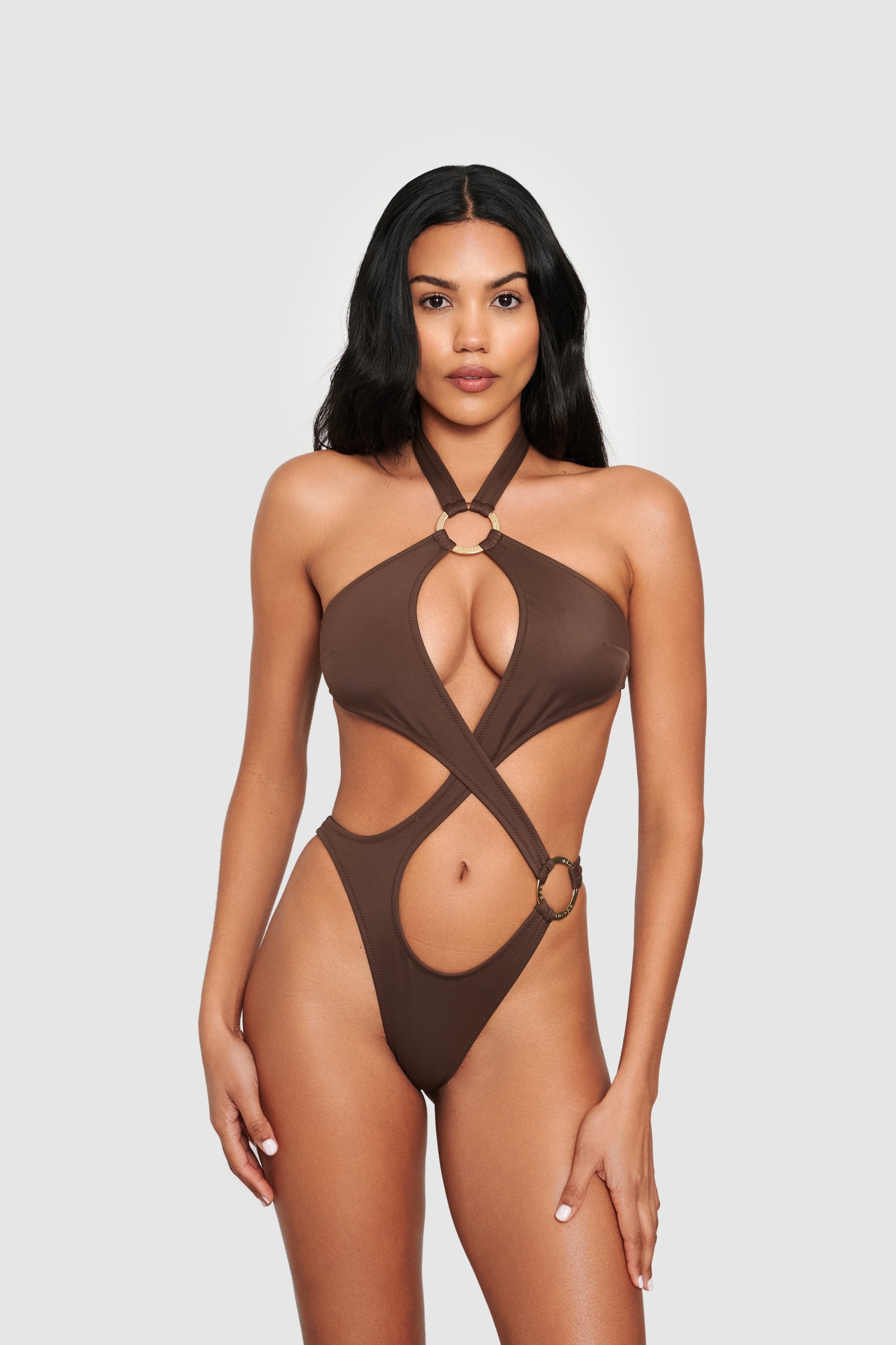 The AMALFI swimsuit has been perfectly designed to give you the best shape. The cut outs and shapes are all perfectly placed to enhance your curves. The cross over straps to cinch in your waist and enhance cleavage. High rise cut to elongate legs topped with two Adora Swim rings.