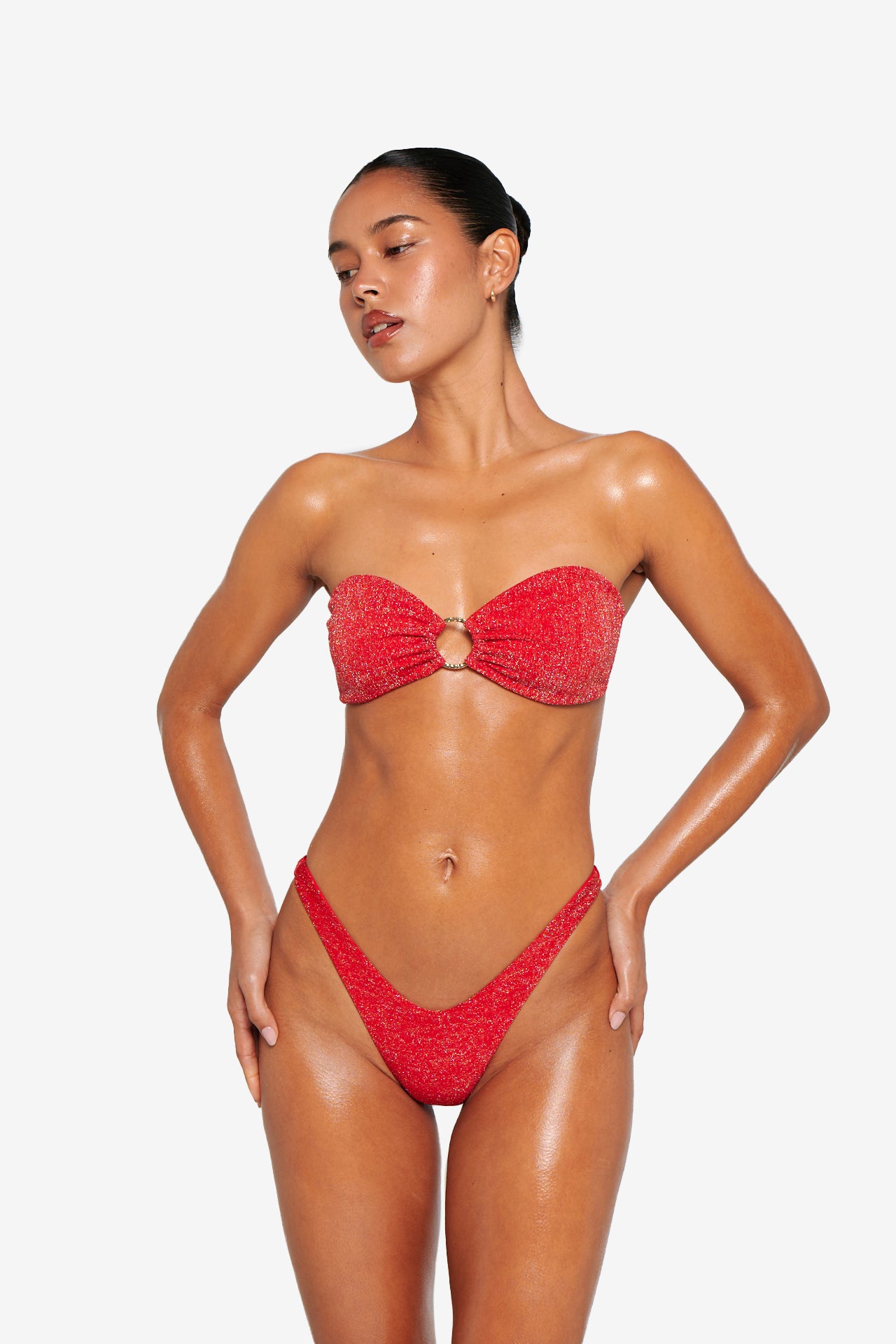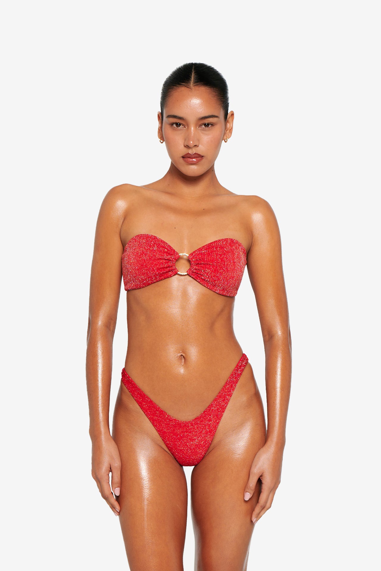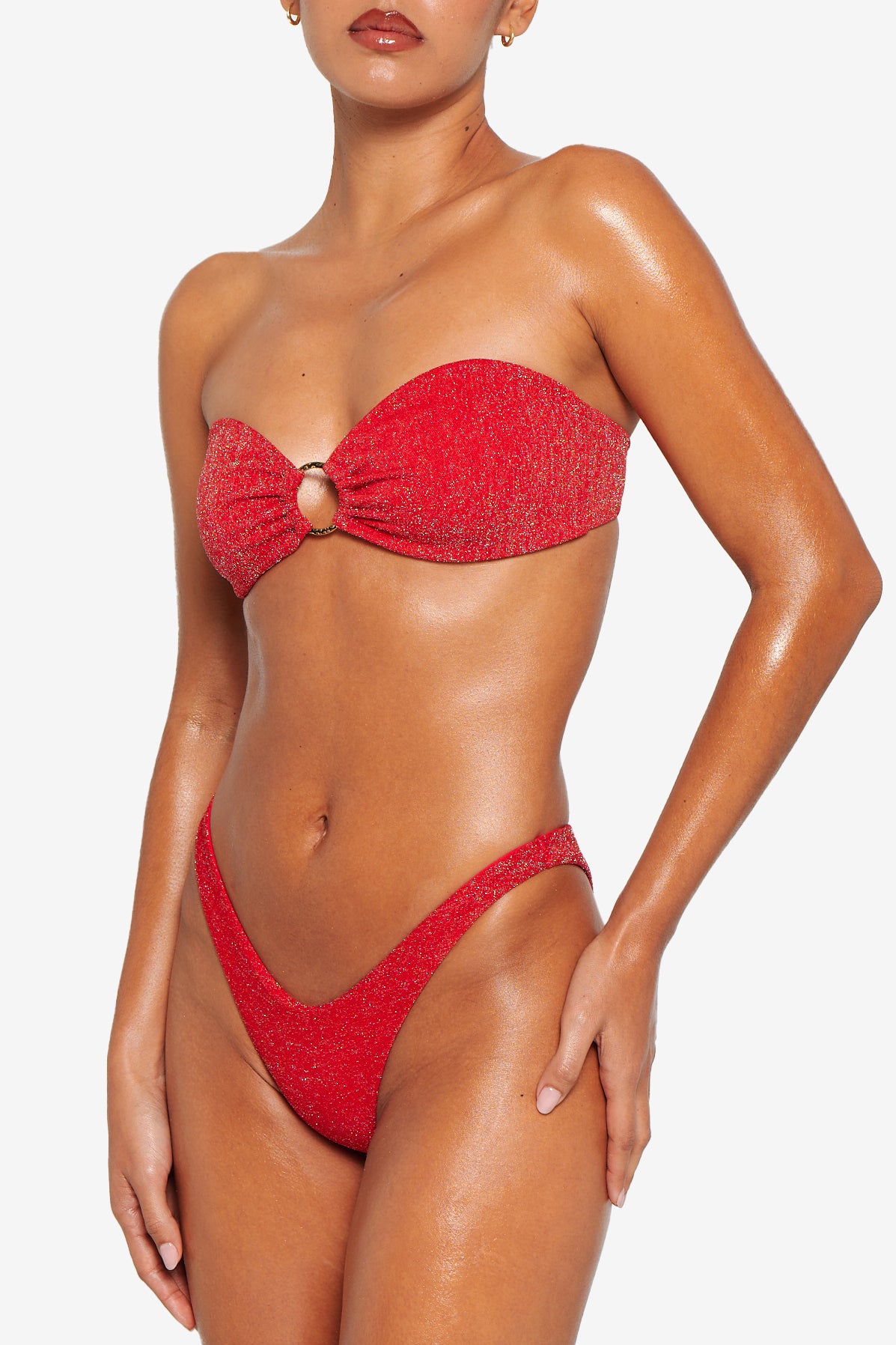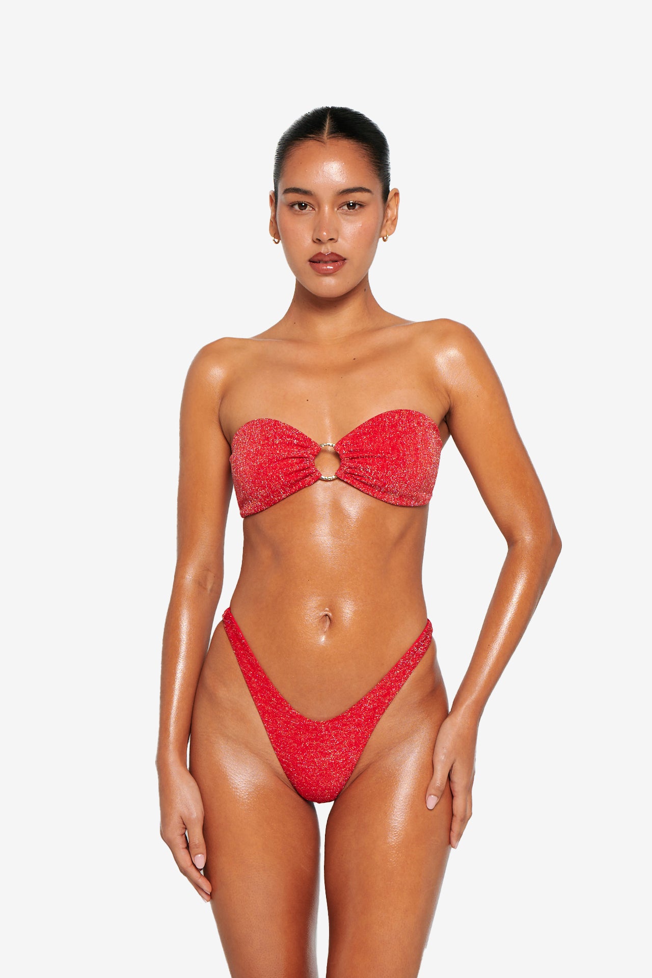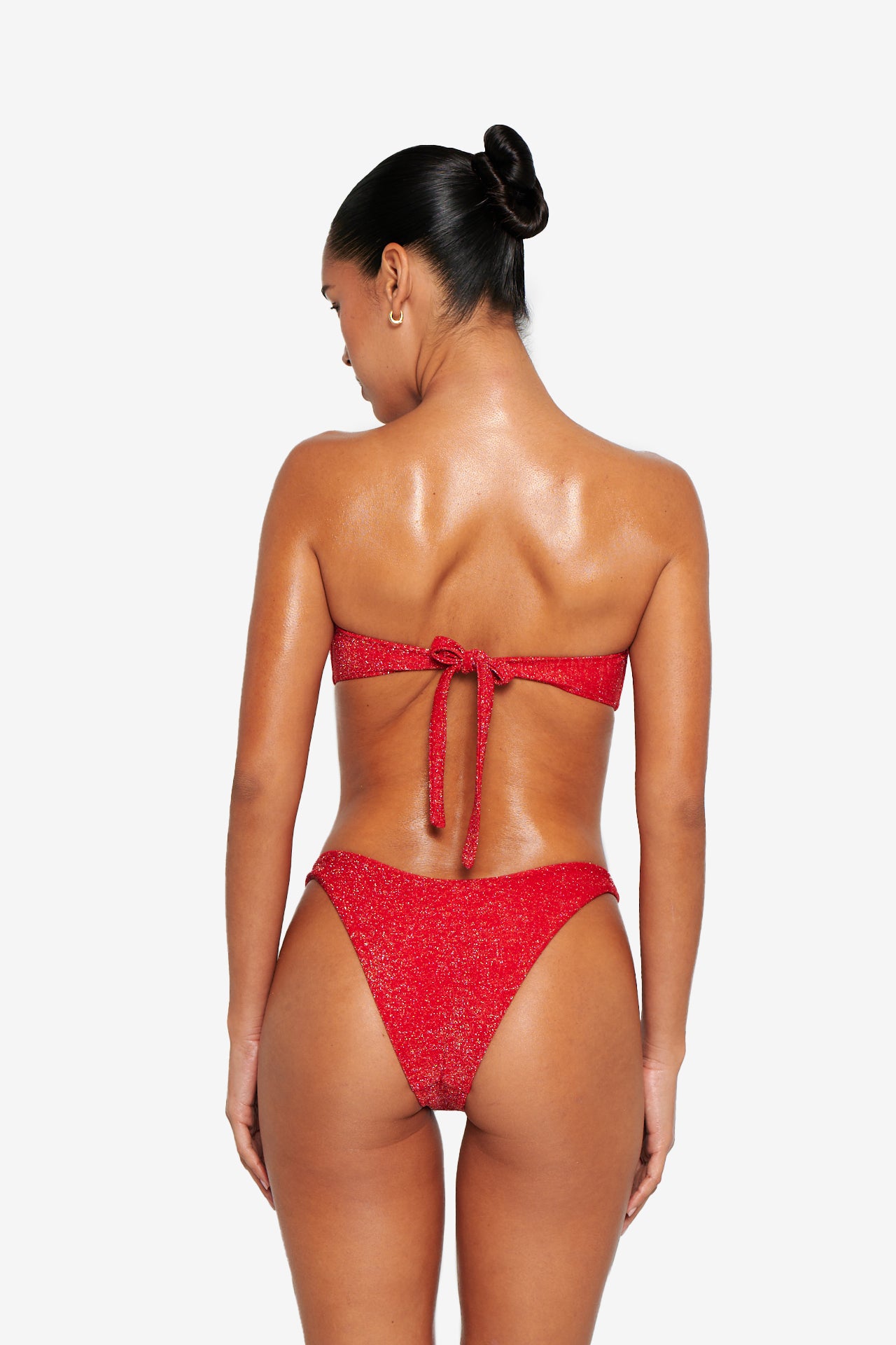 As part of the Casa Solita Collection, this piece is made from our signature glitter swim fabric, a luxurious blend of recycled polyester and metallic fibre that shimmers in the sunlight. Double lined for comfort and support.