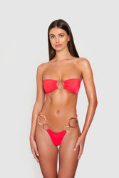 PORTOFINO top is a beautiful bandeau top designed for the perfect combination of tanning and style. Single tie in the back featuring one Adora Swim ring. Minimal coverage.