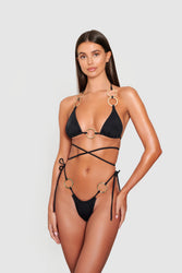 ROME top features triangle cup silhouette, ADORA ring detailing and tie closure at back and neck. Minimal to medium coverage.