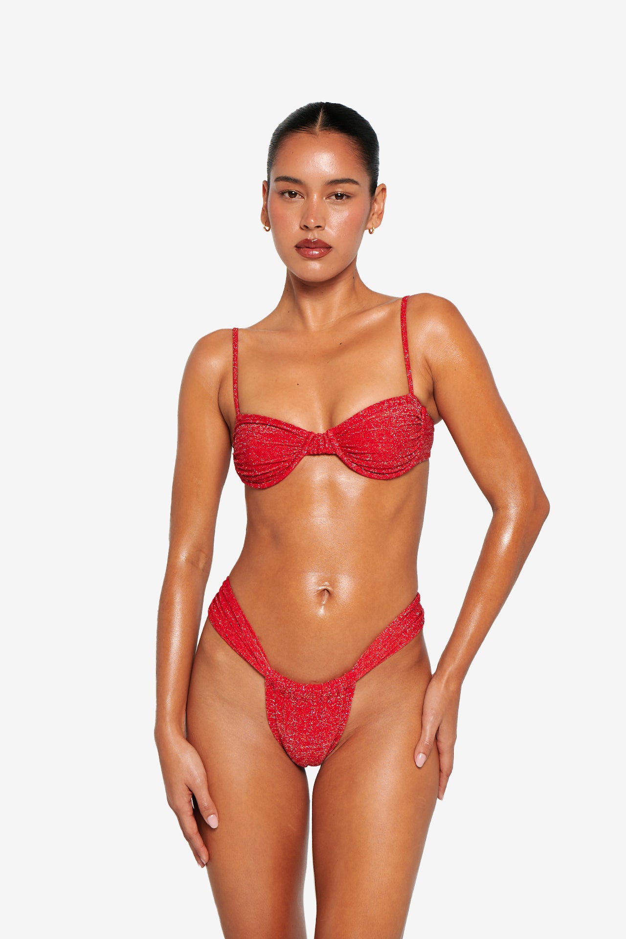 As part of the Casa Solita Collection, this piece is made from our signature glitter swim fabric, a luxurious blend of recycled polyester and metallic fibre that shimmers in the sunlight. Double lined for comfort and support.