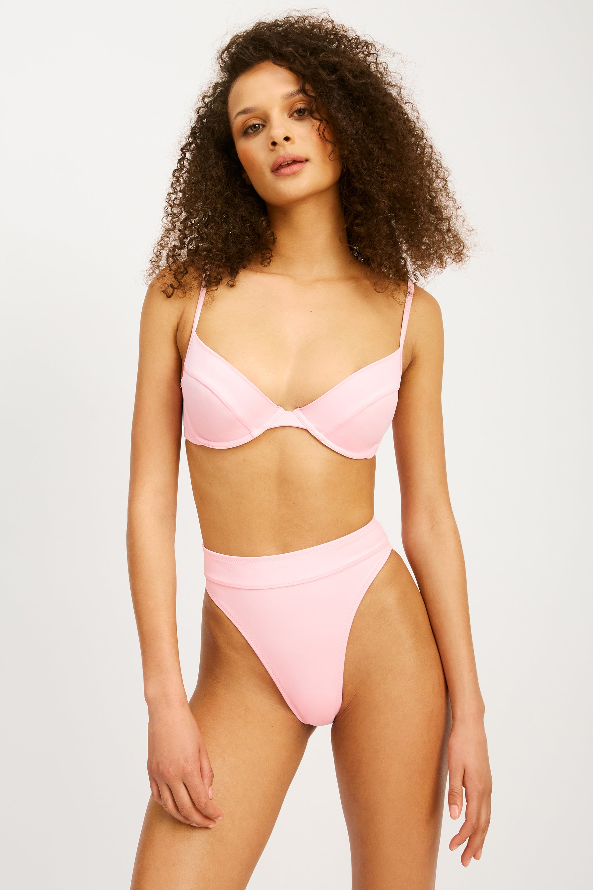 REEF bottom in light pink by adora swim features a high waisted bikini bottom with a waistband helping to accentuate natural curves. High cut leg to elongate legs. Moderate coverage.