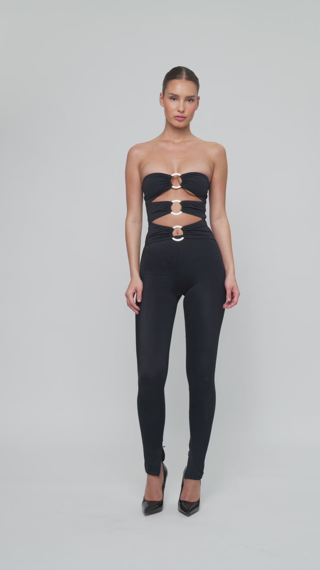 Crafted to steal the spotlight like no other. Made from our 5* swimwear fabric meaning you’ll be sculpted and shaped to enhance your beautiful natural curves. With daring cut outs and a strapless finish to accentuate your neckline. Slip into this jumpsuit and get ready to make heads turn and hearts flutter.