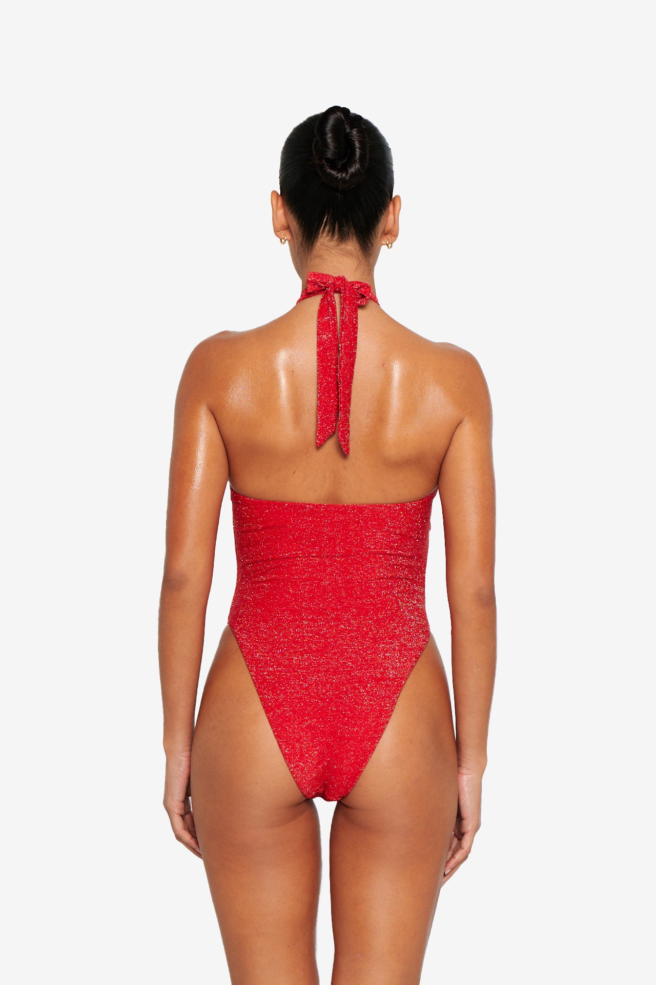 As part of the Casa Solita Collection, this piece is made from our signature glitter swim fabric, a luxurious blend of recycled polyester and metallic fibre that shimmers in the sunlight. Double lined for comfort and support.