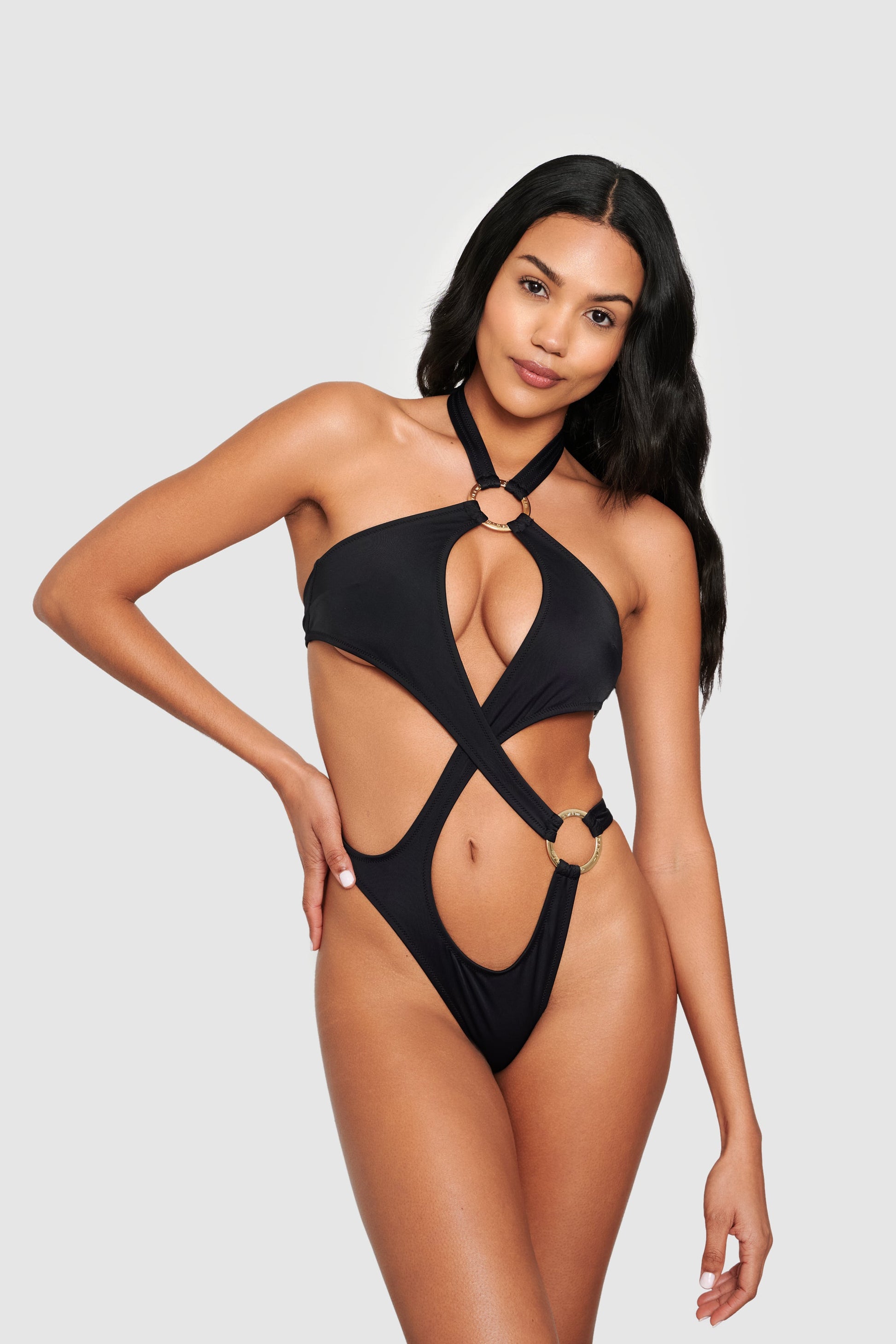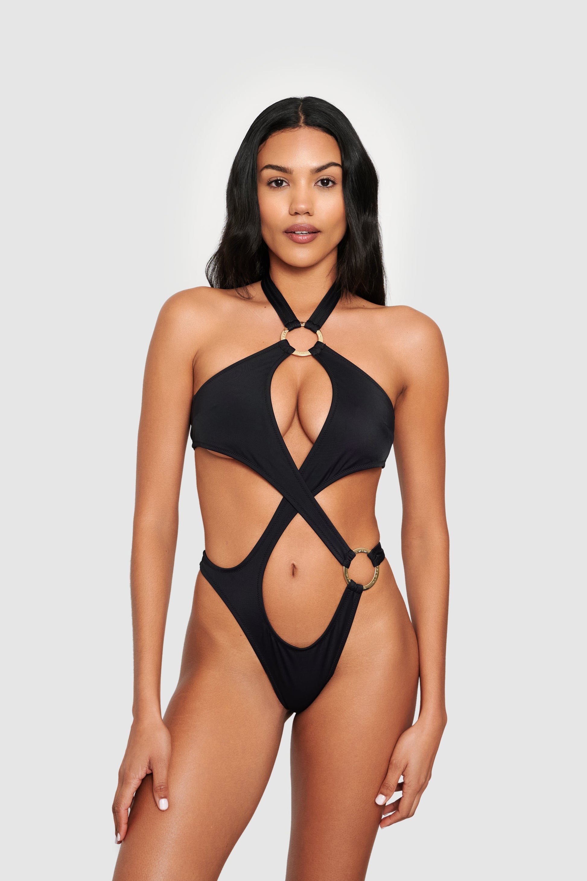 The AMALFI swimsuit has been perfectly designed to give you the best shape. The cut outs and shapes are all perfectly placed to enhance your curves. The cross over straps to cinch in your waist and enhance cleavage. High rise cut to elongate legs topped with two Adora Swim rings.