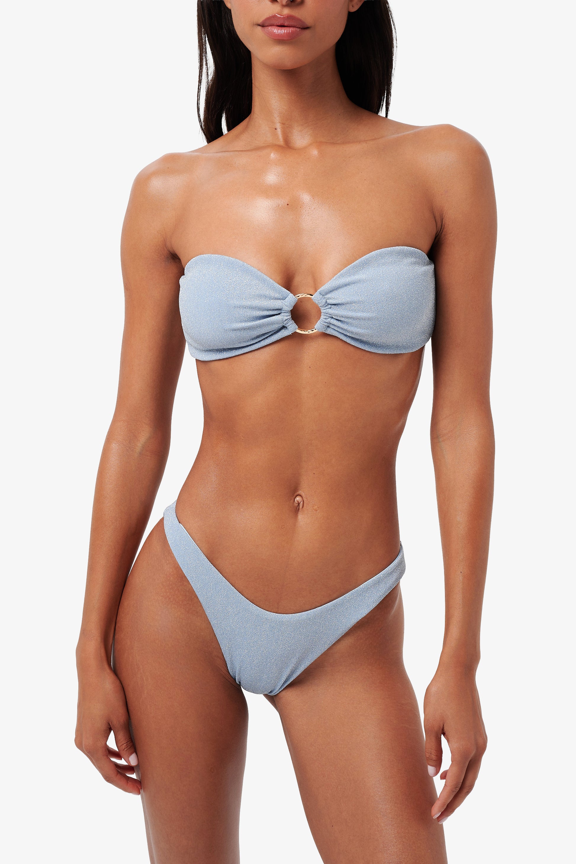 As part of the Casa Solita Collection, this piece is made from our signature glitter swim fabric, a luxurious blend of recycled polyester and metallic fibre that shimmers in the sunlight. Double lined for comfort and support.