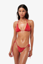 The essential triangle reimagined with a playful twist. The DUNE bikini top features adjustable coverage, delicate straps, and fixed bow details at the top of each triangle cup for a flirty, feminine finish. Tie at the neck and back for a custom fit. Perfect for tanning, layering, and mixing with any Adora Swim bottoms.