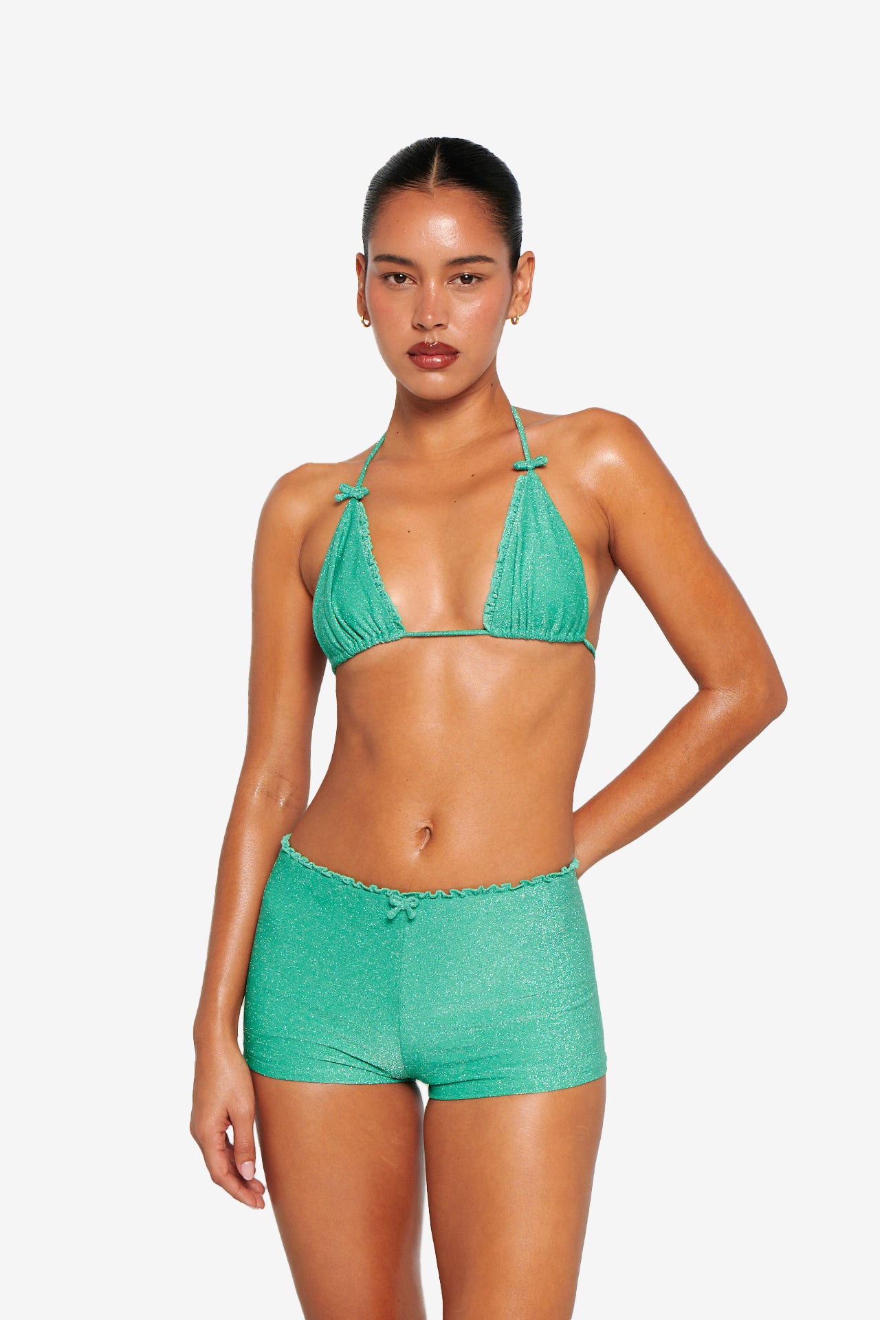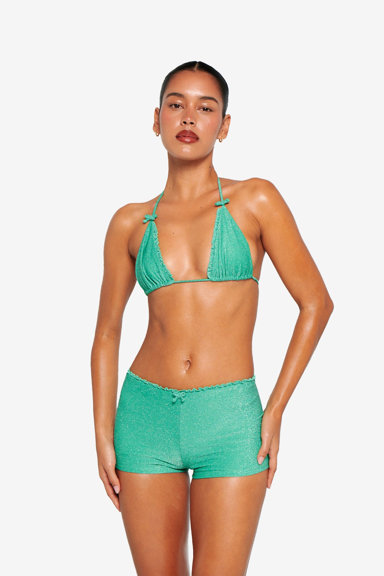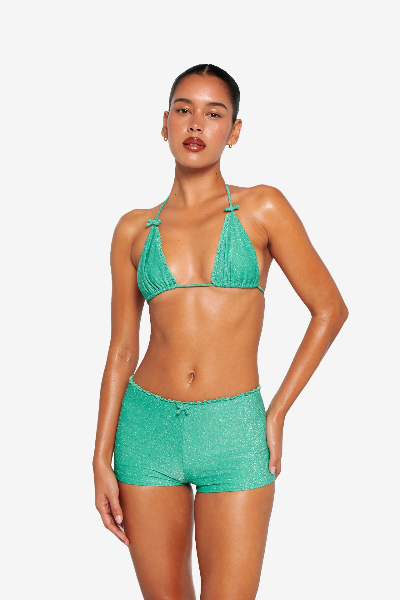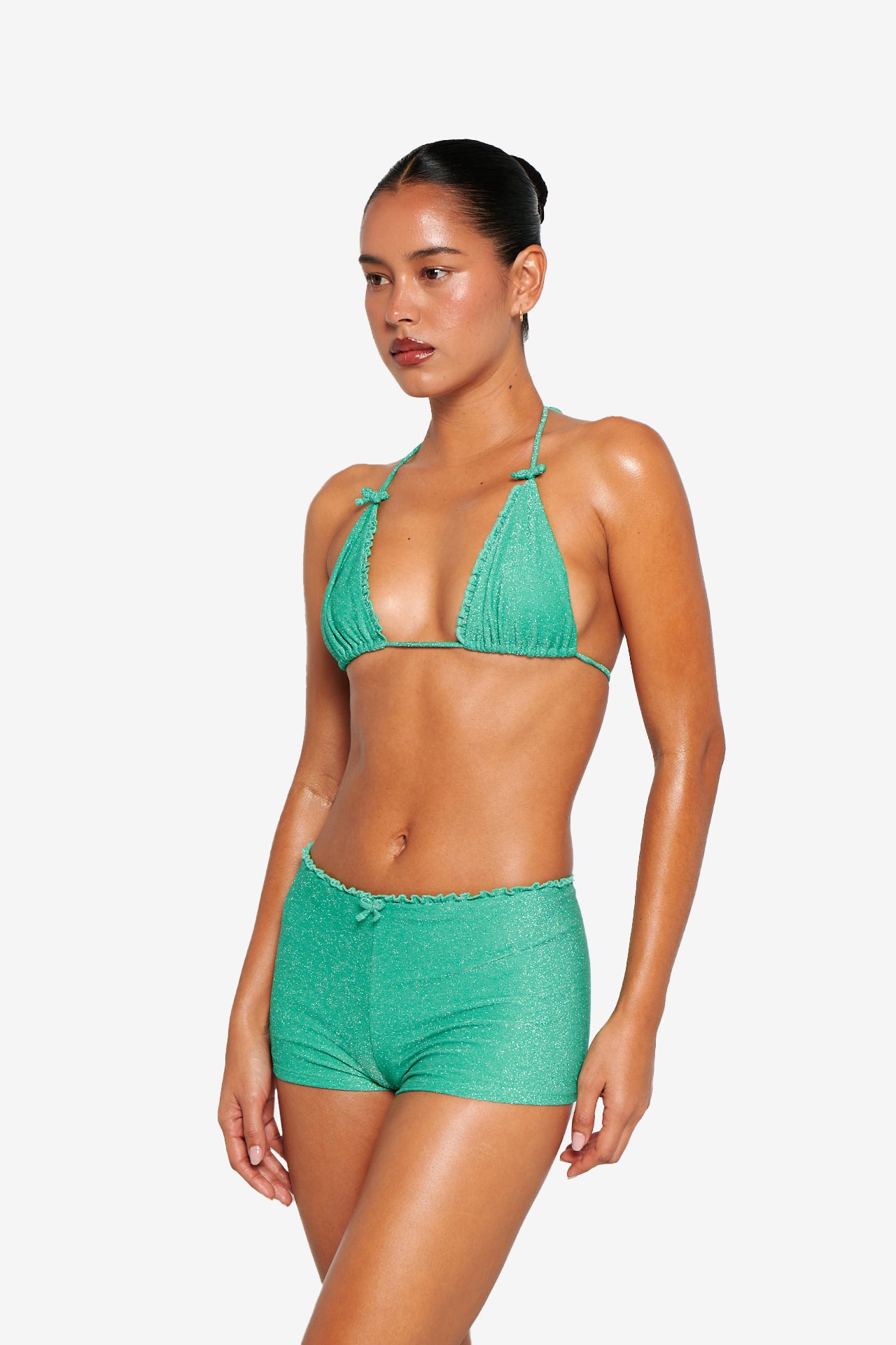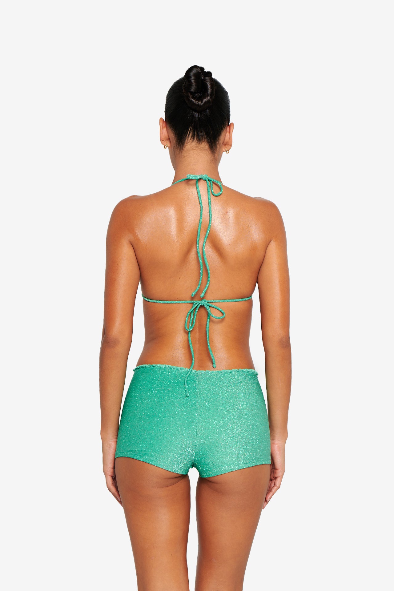 From beach strolls to after-sunset plans. The MARINA shorts feature a flattering low to mid rise fit with soft scalloped edging and a cheeky cut at the back. Designed to hug the body and shimmer with every step, they’re the perfect throw-on piece for when your bikini needs a little something extra.