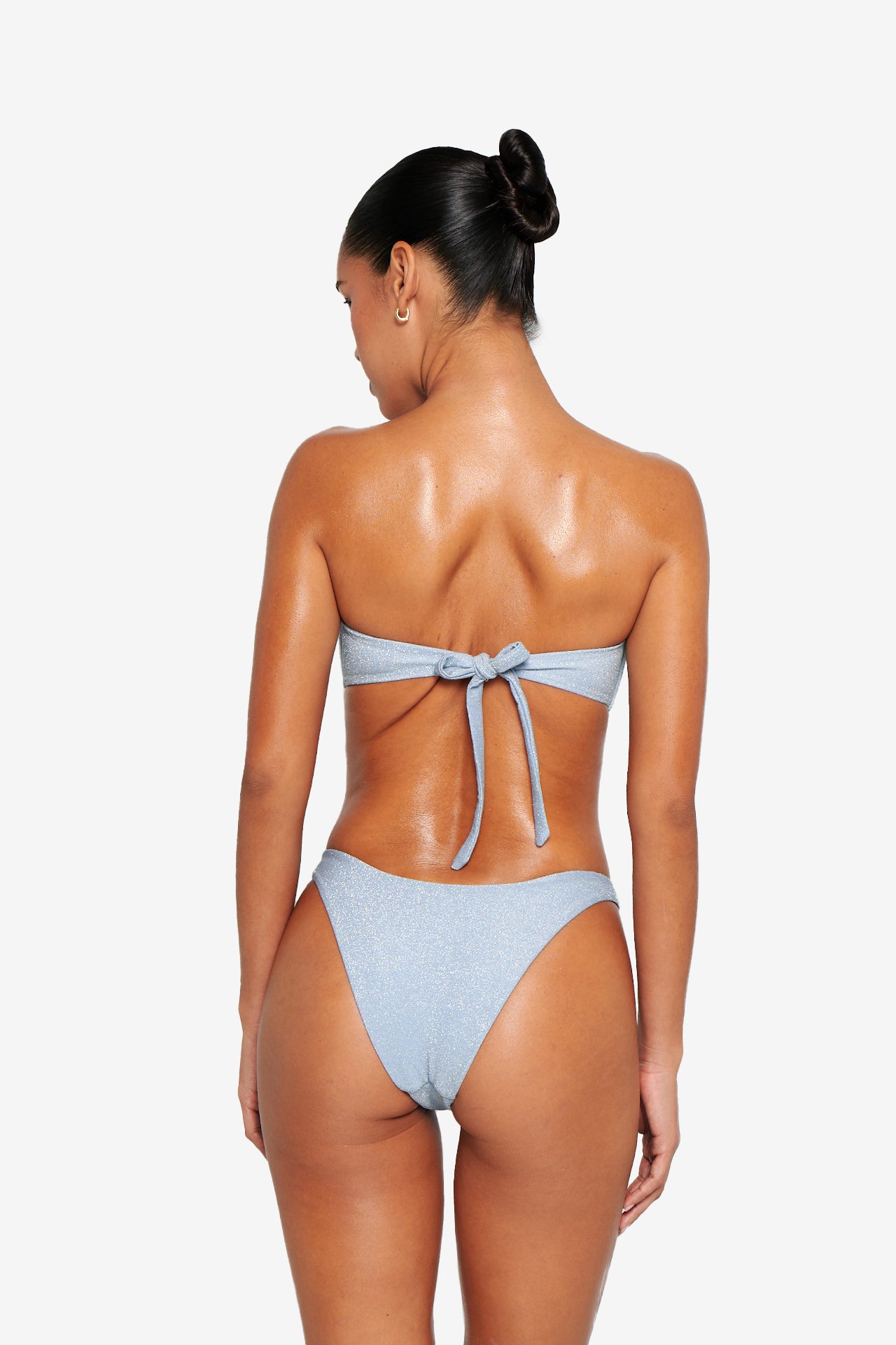 As part of the Casa Solita Collection, this piece is made from our signature glitter swim fabric, a luxurious blend of recycled polyester and metallic fibre that shimmers in the sunlight. Double lined for comfort and support.