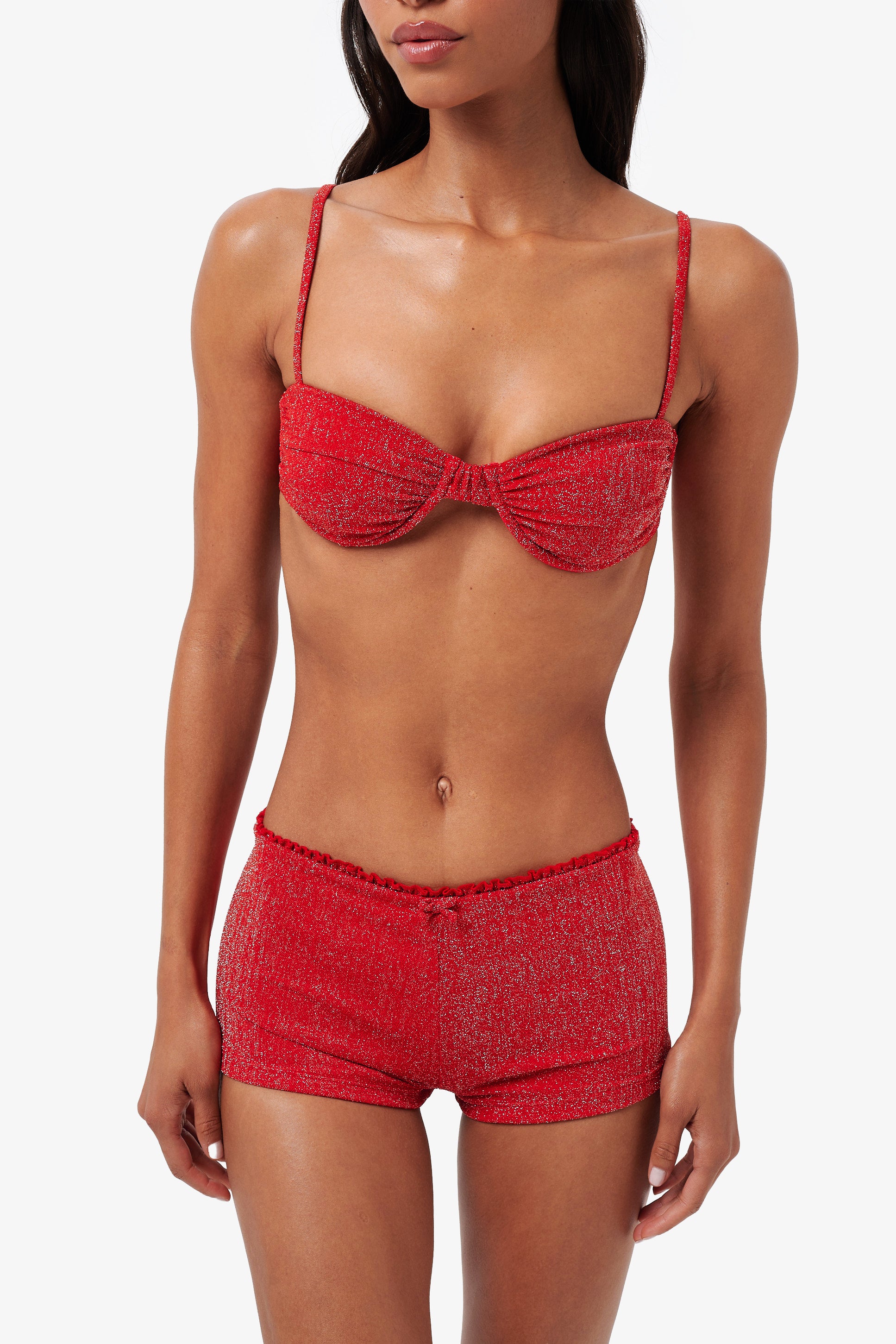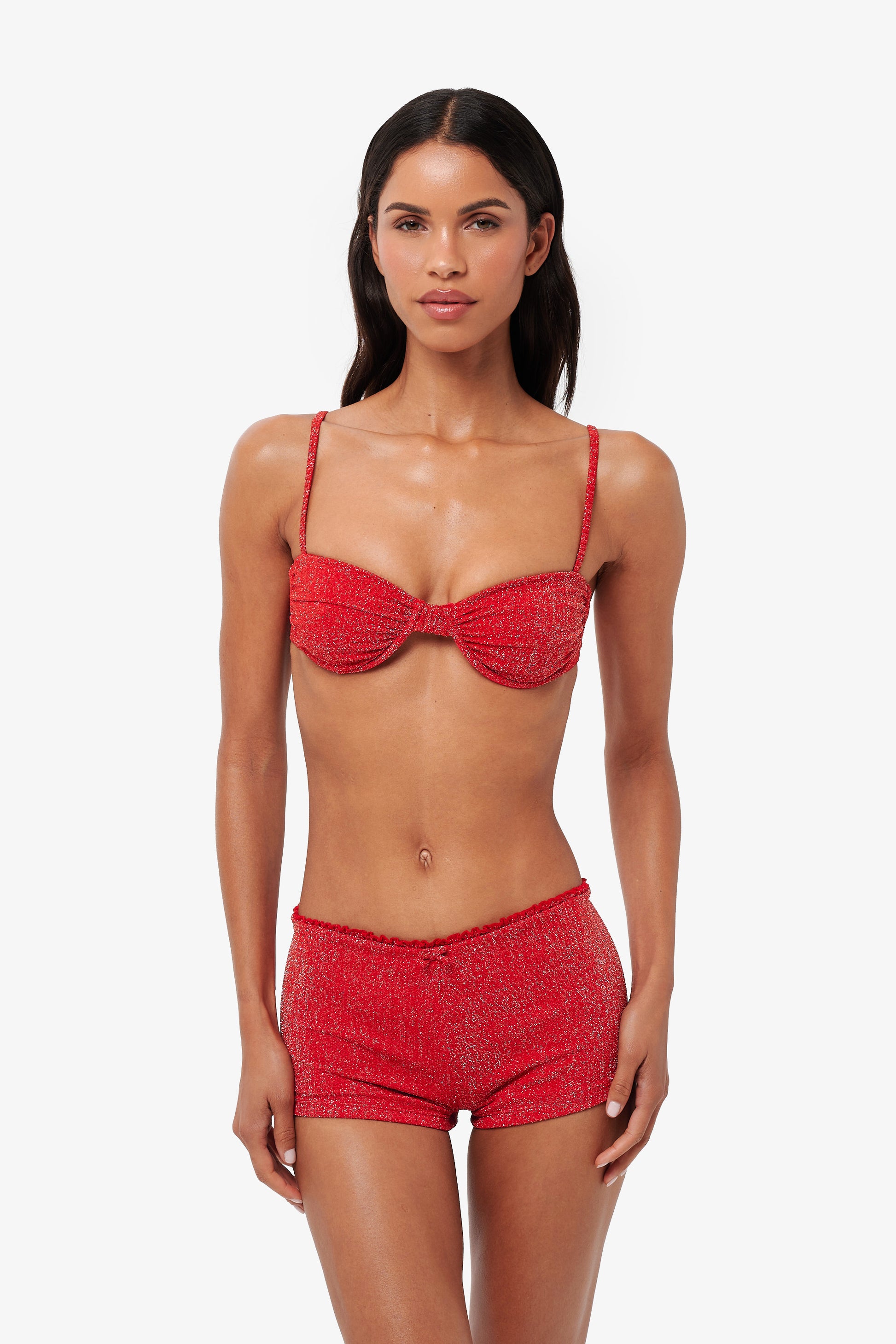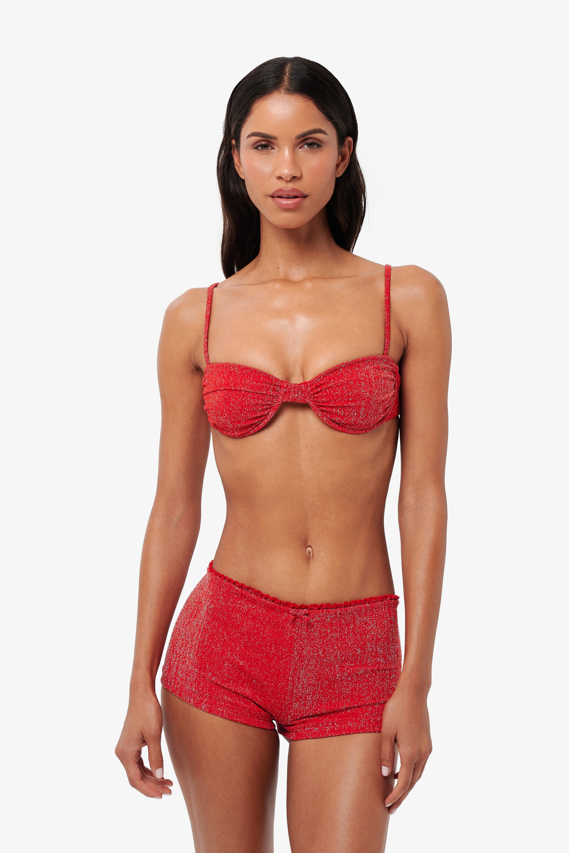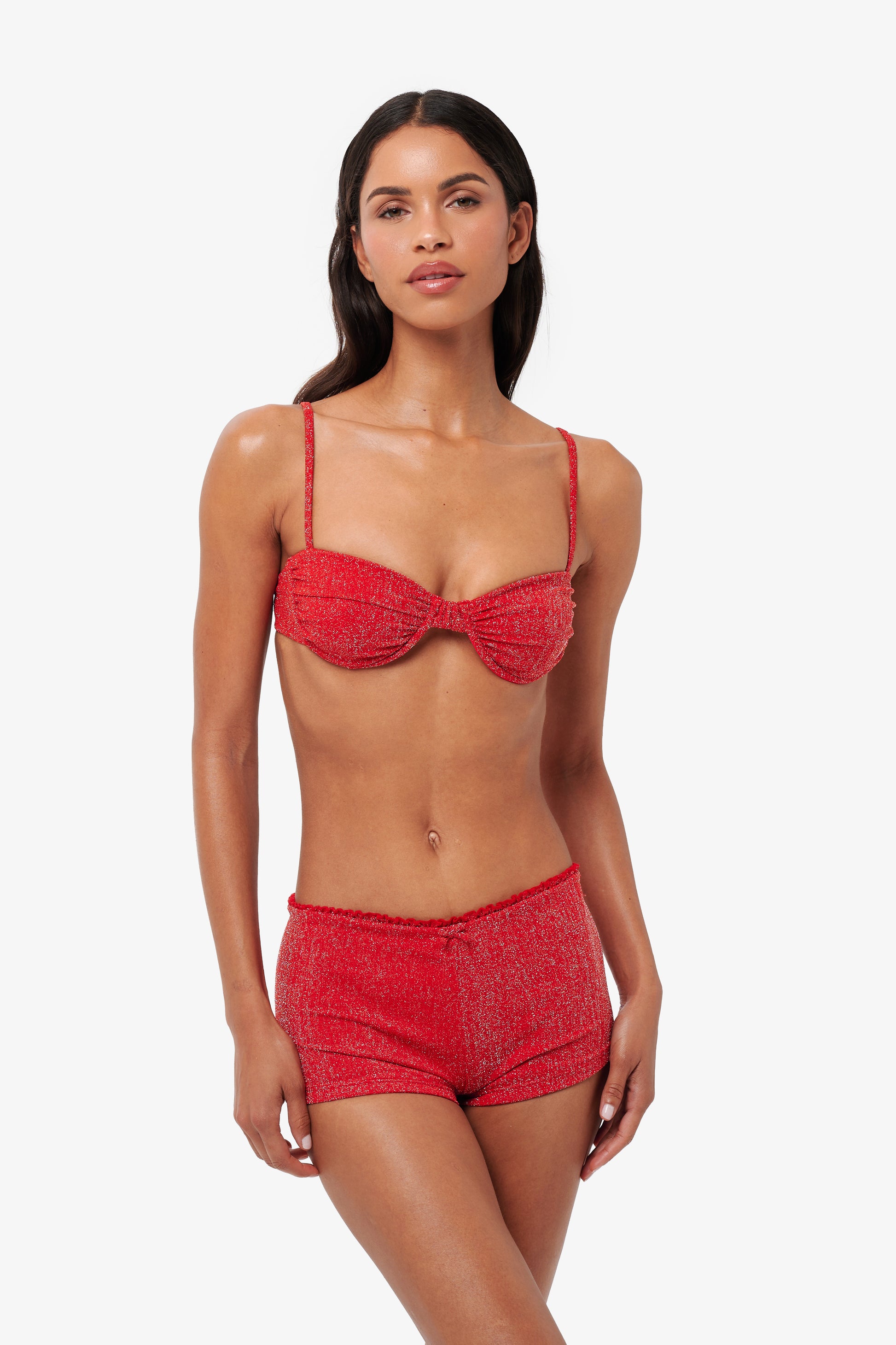 From beach strolls to after-sunset plans. The MARINA shorts feature a flattering low to mid rise fit with soft scalloped edging and a cheeky cut at the back. Designed to hug the body and shimmer with every step, they’re the perfect throw-on piece for when your bikini needs a little something extra.