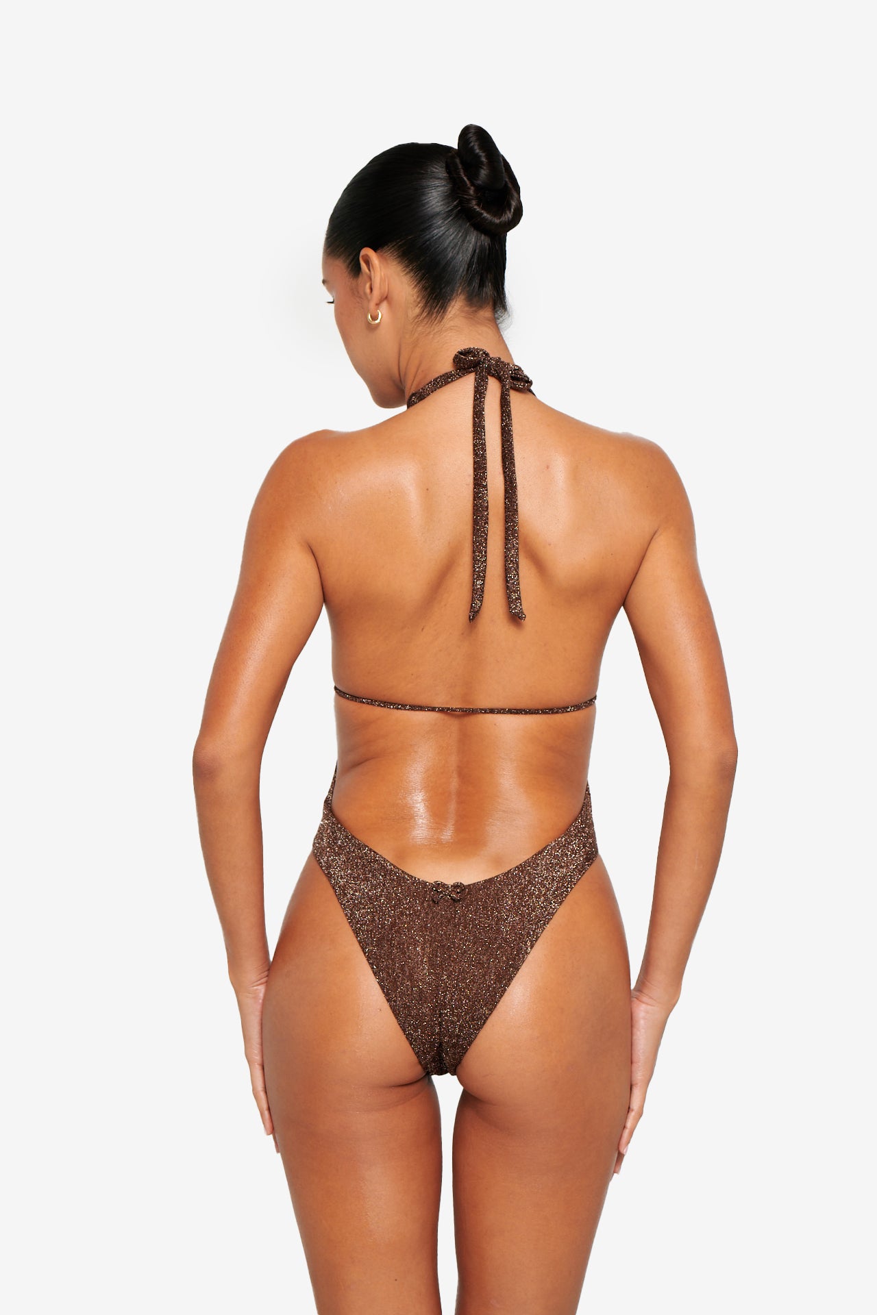 As part of the Casa Solita Collection, this piece is made from our signature glitter swim fabric, a luxurious blend of recycled polyester and metallic fibre that shimmers in the sunlight. Double lined for comfort and support.